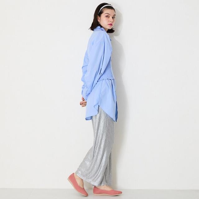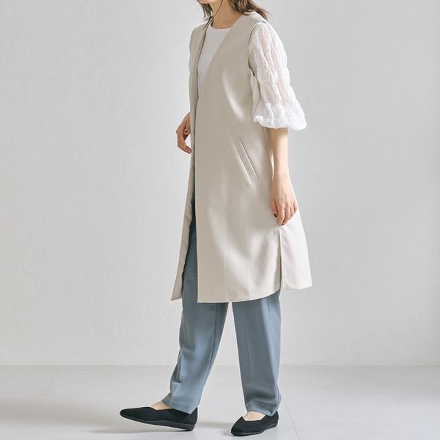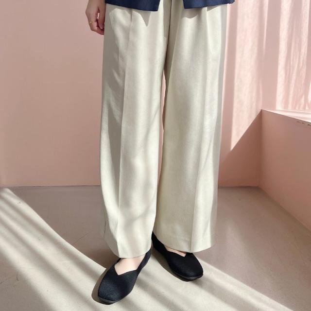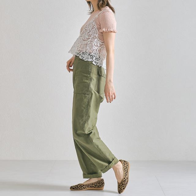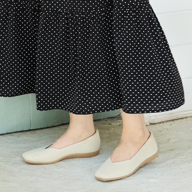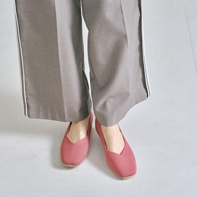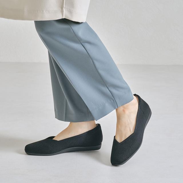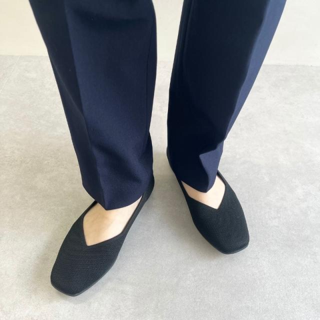 程よく広めのスクエアトゥで指先部分も窮屈感なく履け、Vカットの履き口で足元がすっきり見えるようなこだわりもプラス。