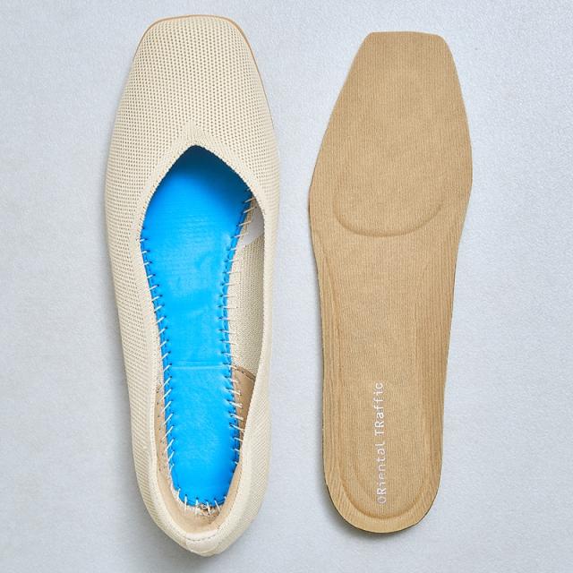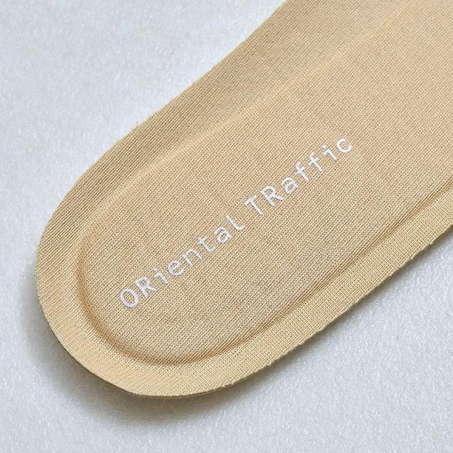 弾力性のある中敷は足当たりの良いナイロン素材で滑りにくく、アーチを付けたデザインで足を包み込むような仕様に。