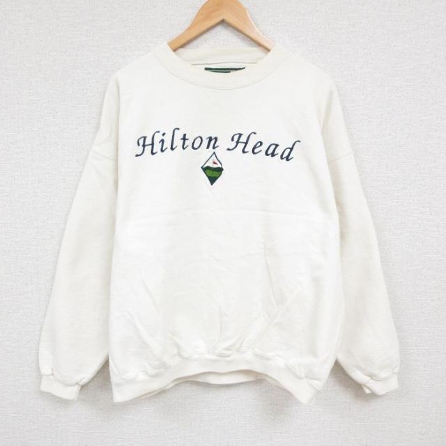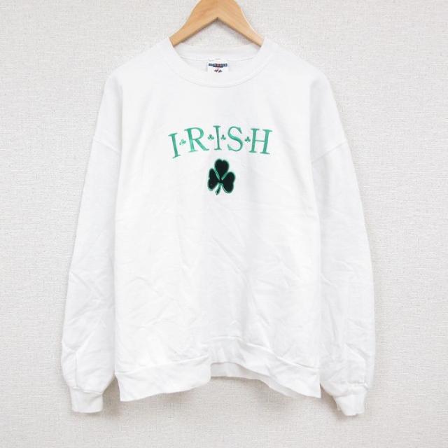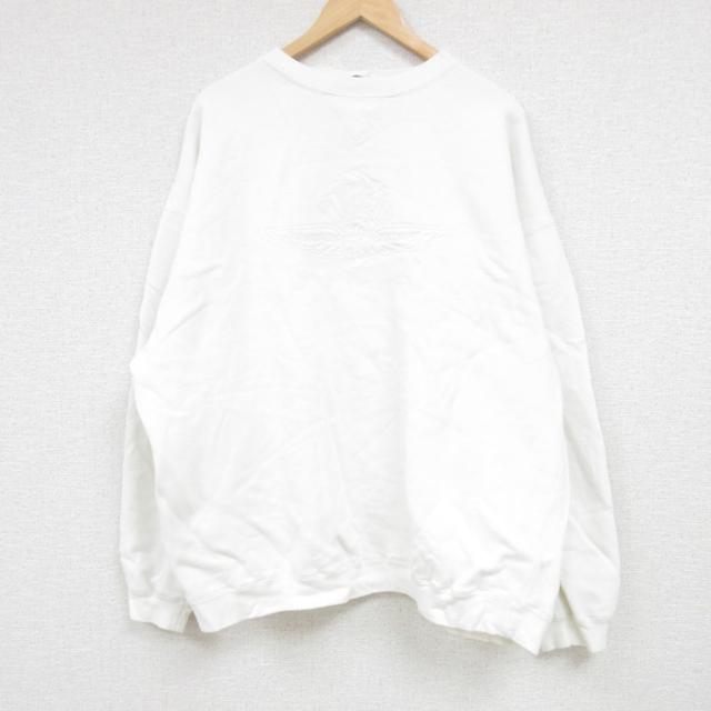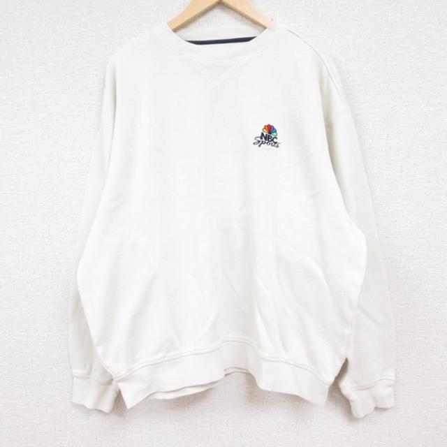 古着 長袖 スウェット メンズ 00年代 00s NBC 刺繍 大きいサイズ コットン クルーネック 白 ホワイト XLサイズ 中古 スエット 中古 古着