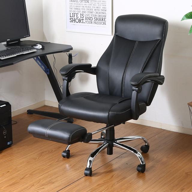デスクに向かって集中しているとどうしても疲れてくるのではないでしょうか。そんな時、こちらのフットレスト付きリクライニングチェアがあれば、ゆったりと足を伸ばして身体をチェアに預けてリラックスすることができます。