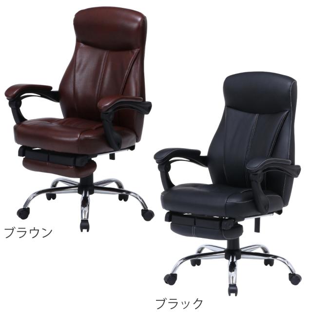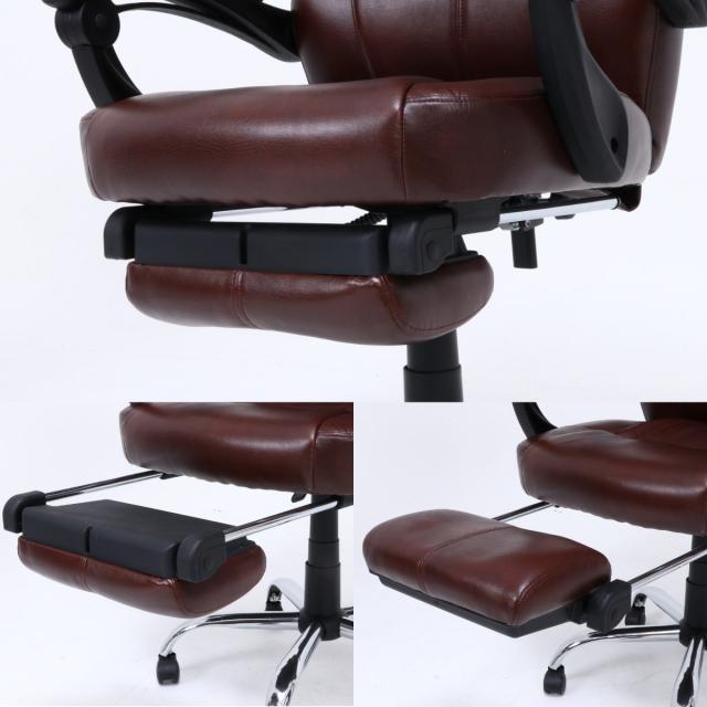 リクライニングチェア 座面高42〜50cm ゼクス ( デスクチェア フットレスト付き ハイバック レザー調 肘掛付き 昇降式 高さ調節 ビンテージ調 )
