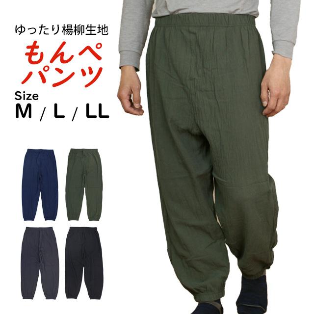 | もんぺパンツ ゆったり ルームパンツ メンズ ホッピング ジョガーパンツ 吸水性 軽量 さらさら生地 ズボン 薄手 綿100% M L LL |