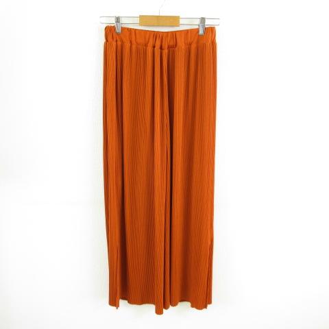【中古】k プリーツパンツ ワイド ロング 茶 M *T309 レディース