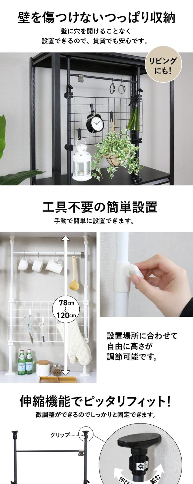 キッチンラック 突っ張り 突っ張りキッチン ラック 隙間 スリム 省スペース キッチン収納 収納 シンク上ラック キッチンネット ジアン 北欧 新生活