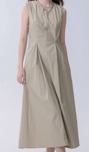 ロングワンピース 細見え 夏 普段使い ルーム お出かけ デート グレージュ 綿 ラウンドネック 無地 大人 清楚 可愛い 上品 シンプル ゆったり Aライン ノースリーブ ミモレ丈 人気 トレンド 10代 20代 30代