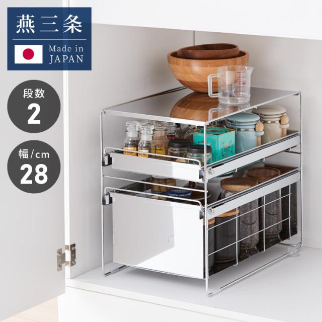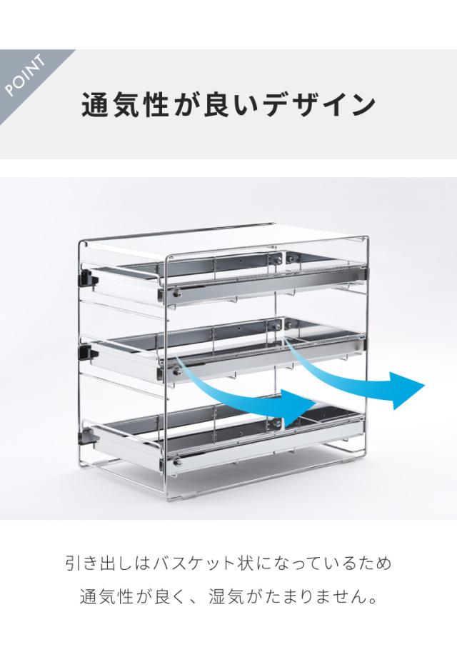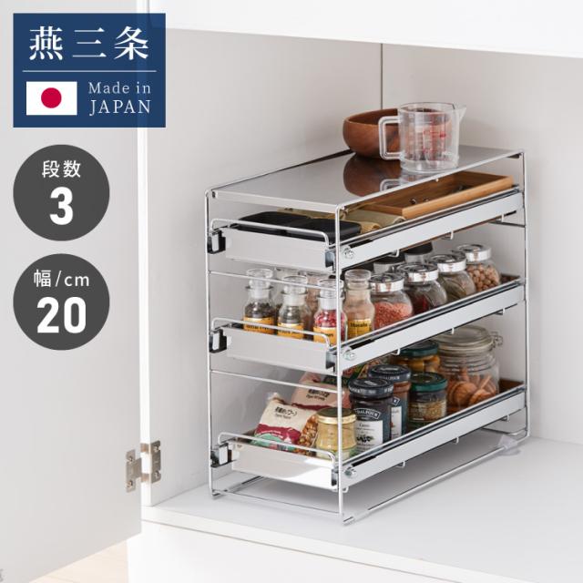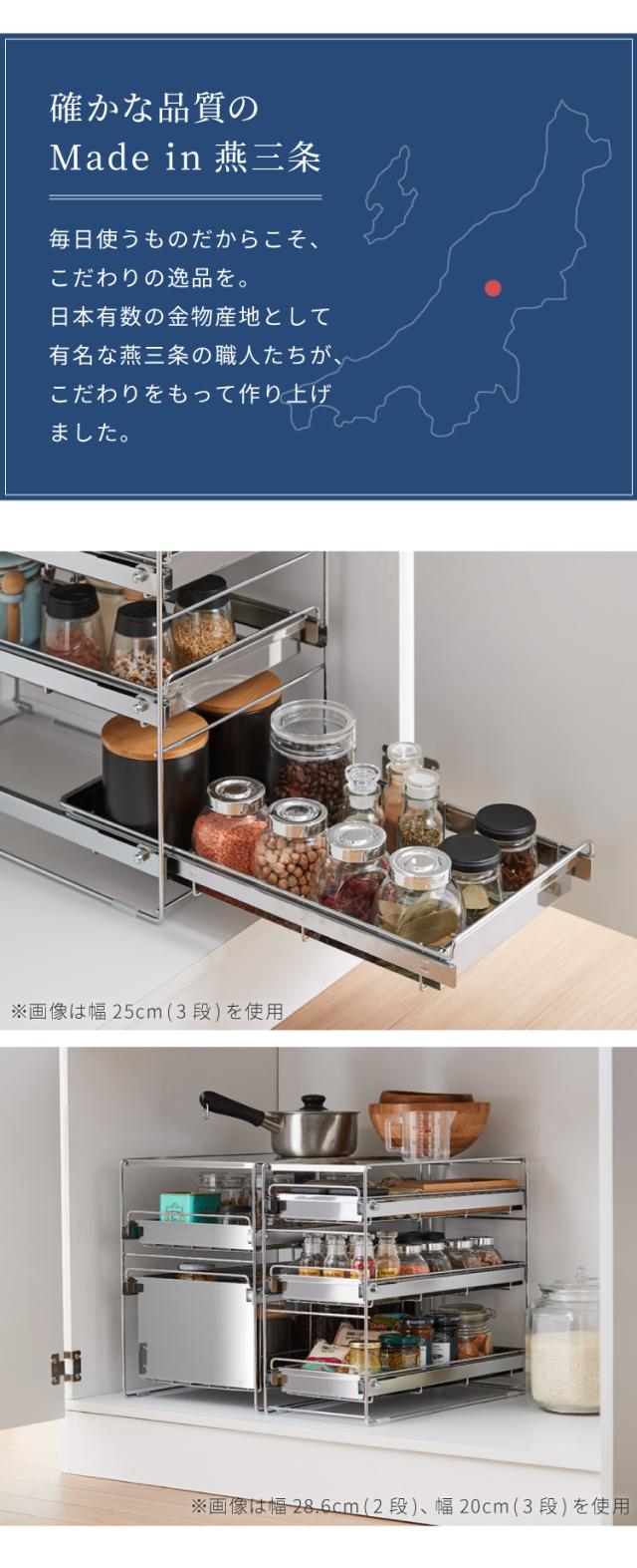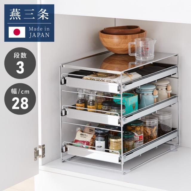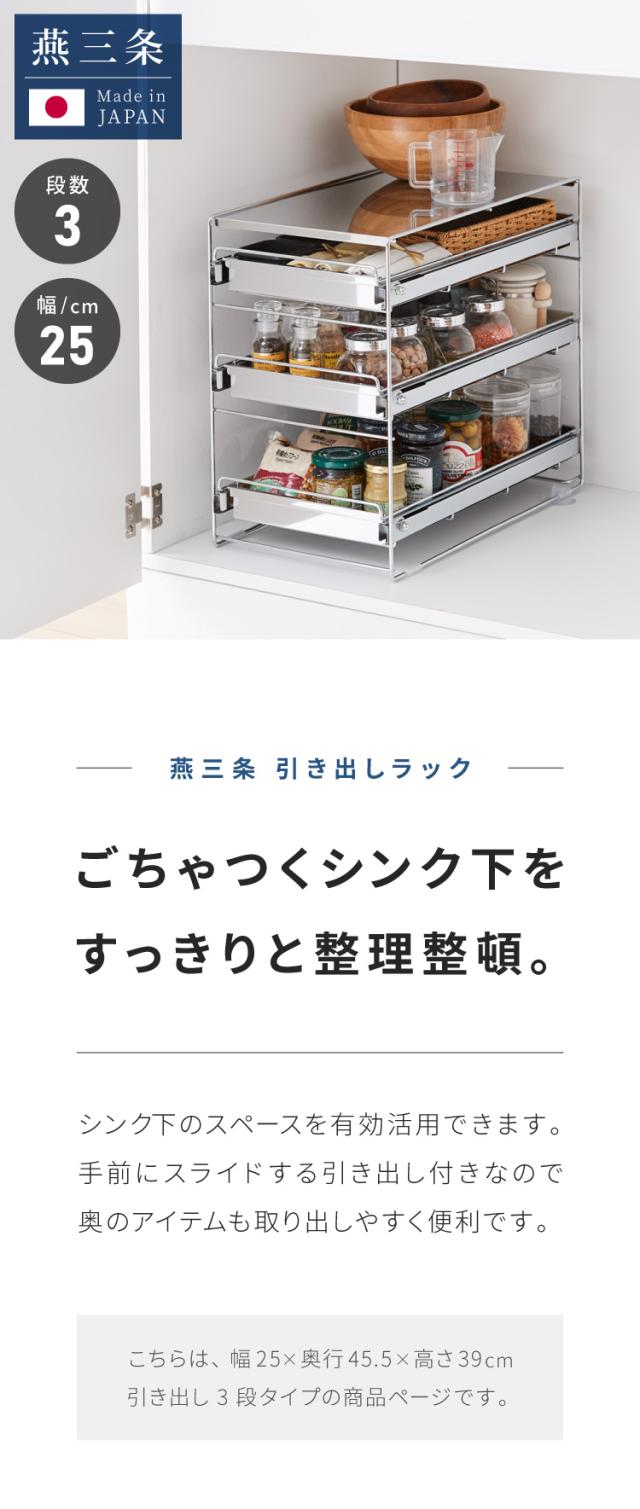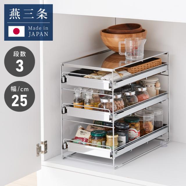 日本製 燕三条 シンク下 スムーズ引き出しラック 3段 幅25cm 頑丈 シンク下収納バスケット ステンレス製 シンク下収納 スライド ラック キッチン収納 引出し 隙間収納 すき間収納 おしゃれ(代引不可)【送料無料】