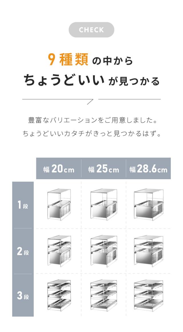 シリーズ内で、幅3サイズ×1段〜3段のバリエーションからお選びいただけます。