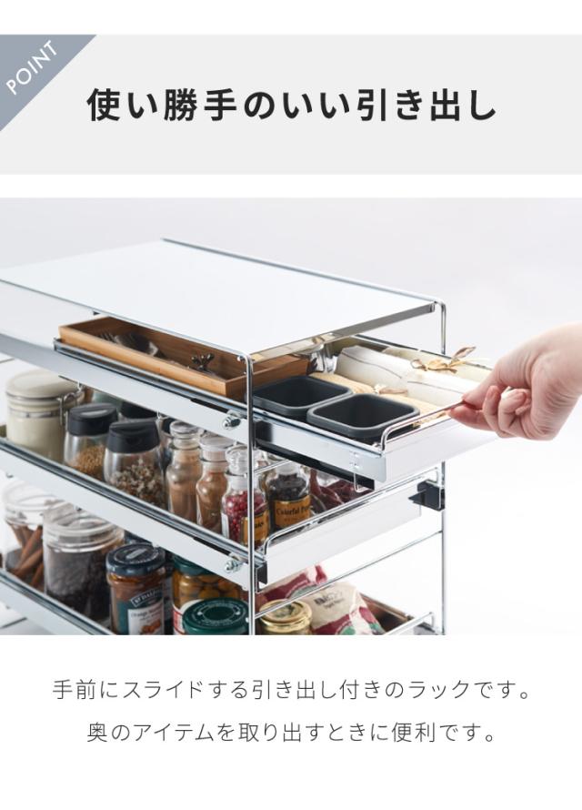 手前にスライドする引出し式なので、奥のモノも取り出しやすく便利です。