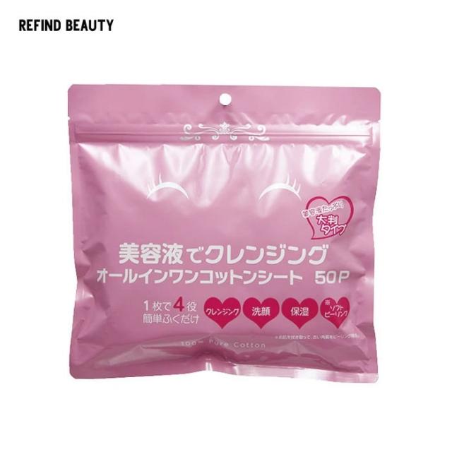 ウォータープルーフ処方で、保湿、クレンジング、洗顔、ソフトピーリングまで出来る1枚で4役のオールインワンコットンシートです。
