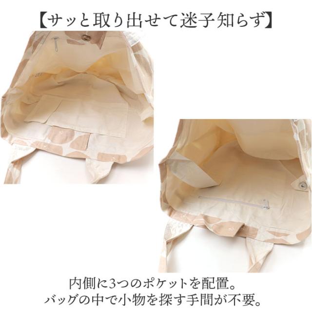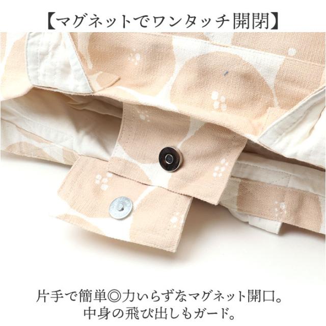 | 商品説明 | 【抜群の収納力でお出かけの味方】 ・しっかり入る容量約15L!頼りになる「バケツ型トートバッグ」が新登場。 【お買い物バッグやマザーズバッグに】 ・ガバっと開いて横置きも!たっぷりマチを設けた丸底のバケツ型。色んなシーンで使えて万能◎ 【マグネットでワンタッチ開閉】 ・片手で簡単◎力いらずなマグネット開口。中身の飛び出しもガード。 【ころんとしたフォルムにチェンジ】 ・内側ベルトを寄せてマグネットを留めると、丸いカタチに。荷物の量やお好みでアレンジ。 【荷物をざっくりひとまとめ】 ・A4サイズ対応。マイボトルやお子さまの着替え、購入した商品などもラクラク収まるサイズ感。 (※)内側ベルトを留めずに使用する場合、A4サイズ収納可能。形を変えると、角が折れてしまう可能性があります。 【サッと取り出せて迷子知らず】 ・内側に3つのポケットを配置。バッグの中で小物を探す手間が不要。 【肩掛けできてストレスフリー】 ・ハンドルは肩にも掛けられる長さに設計。両手が空いて、移動の多い日も快適。 【持っていればヘビロテ間違いなし】 ・ガシガシ使えて丈夫なコットン素材を使用。シーズンレスで活躍。 【コーデのアクセントになるデザイン】 ・シンプルなロゴプリントや、ナチュラルな植物柄など。選ぶのが楽しくなるバリエーション♪ 【ポケット仕様】 ・内側:オープンポケット×2、ファスナーポケット×1 |
