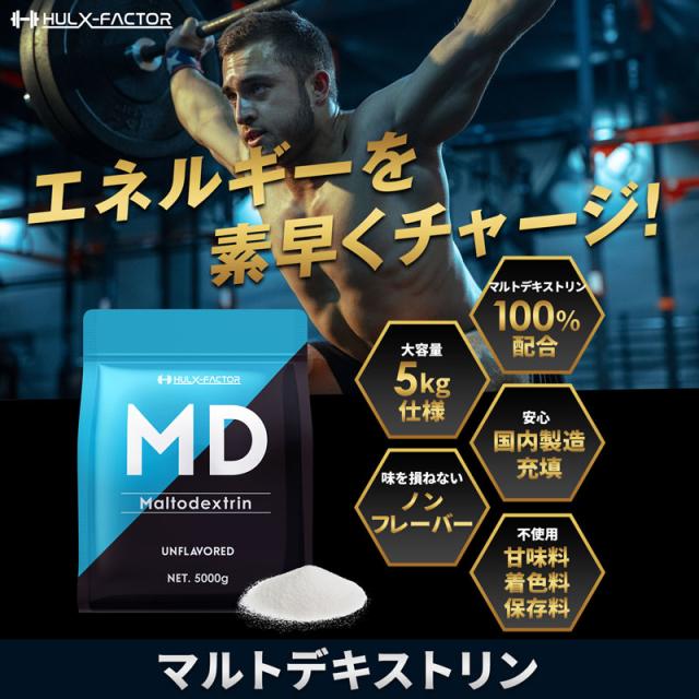 [送料無料]ハルクファクター マルトデキストリン 5kg MD 人工甘味料不使用 国産 低臭製法 粉飴 無添加 植物由来 ノンフレーバー パウダー カーボ サプリ 計量スプーン付き