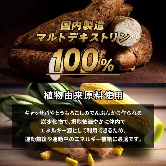 【香料・人工甘味料不使用】国内製造のマルトデキストリン 100%植物由来原料を日本国内工場で充填。