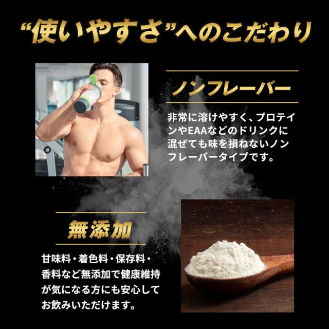 【よく溶けて飲みやすい】風味にクセがなく、プロテインやEAA、BCAAなどのアミノ酸ドリンクに溶かして一緒にお召し上がりいただけます。