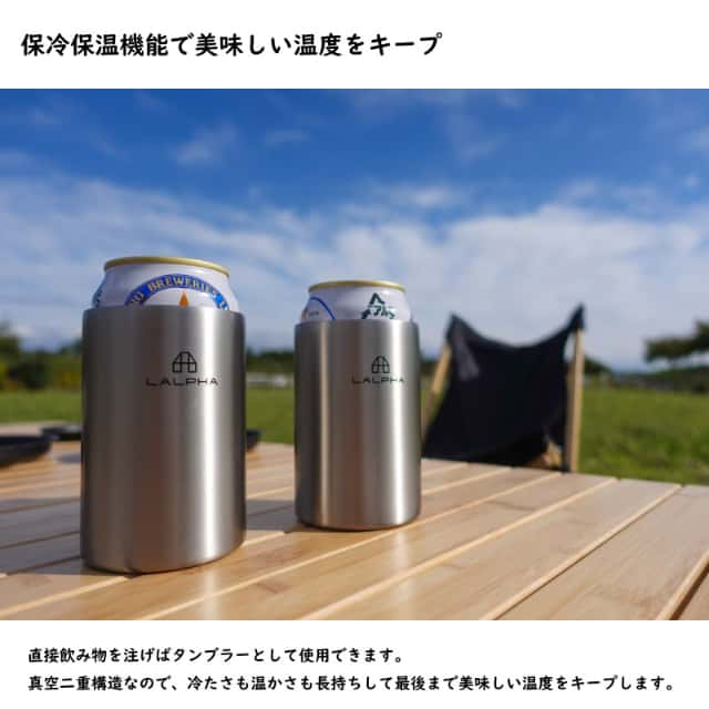 LALPHA ラルファ 真空缶クーラー 350ml飲料缶 缶ホルダー タンブラー 真空二重構造 保冷 保温 美味しい温度をキープ スワロー工業 CK-500