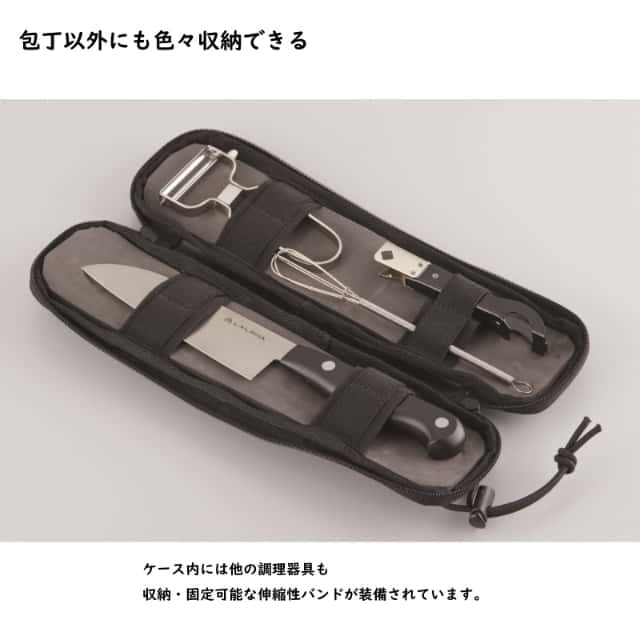 - ケース内には他の調理器具も収納・固定可能な伸縮性バンドが装備。