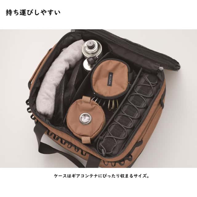 - ケースはギアコンテナにぴったり収まるサイズ。