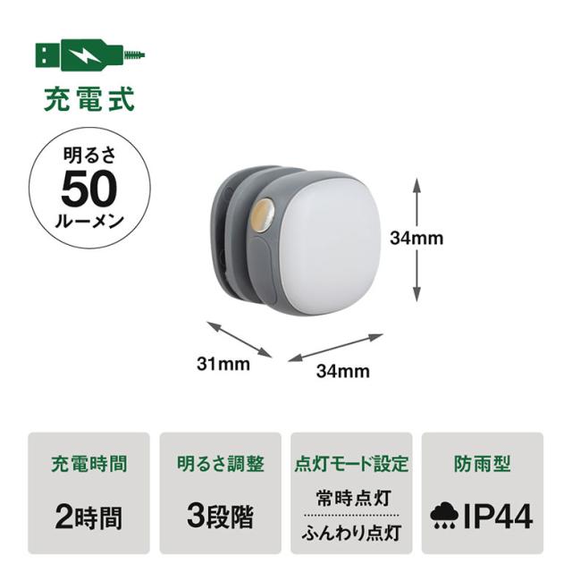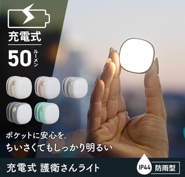 ムサシ 充電式 護衛さんライト ホワイト ピンク ブルー グリーン グレー USB充電 コンパクト 携帯 小型ライト クリップライト アウトドア キャンプ 散歩 ウォーキング 通勤 夜道 懐中電灯 防犯 防災 スポットライト 照明