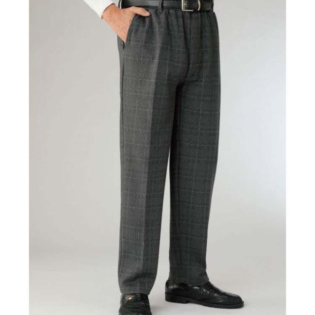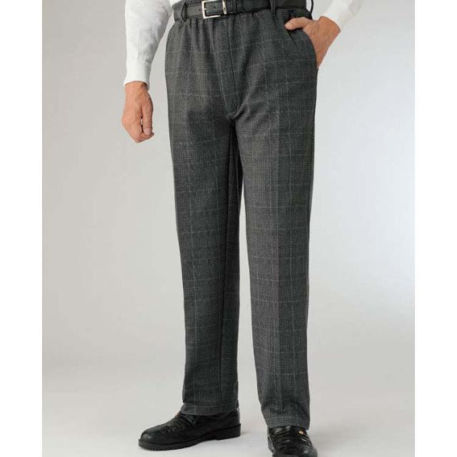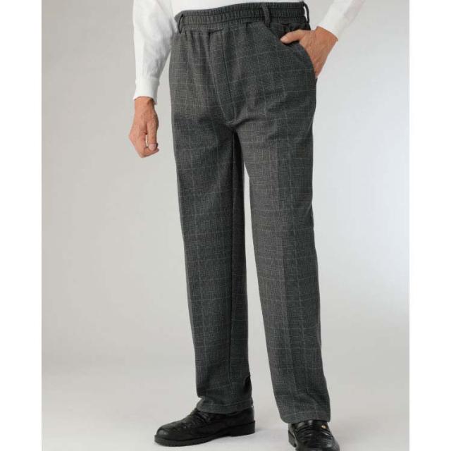紳士服 メンズ 春夏 春物 夏服 裾上げ不要 選べる股下 無地 チェック お出かけ楽々ニットパンツ2色組 AS-0610