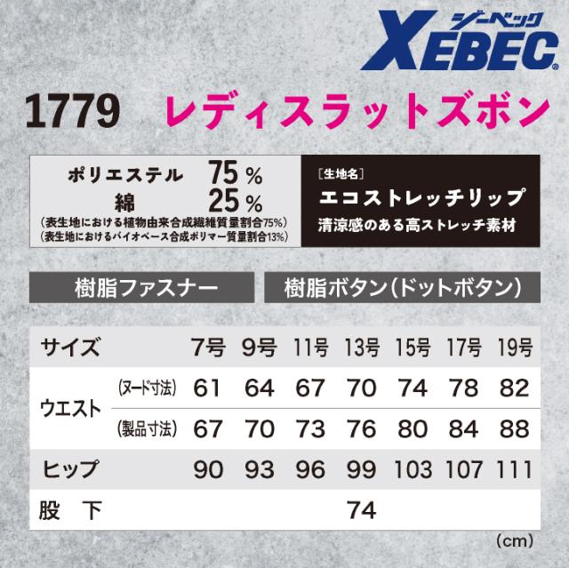 ジーベック レディースラットズボン 春夏 秋冬 パンツ メンズ レディース バイオペット 接触冷感 ストレッチ 帯電防止 吸水速乾 エコ 仕事服 作業着 作業服 おしゃれ ズボン xb-1779