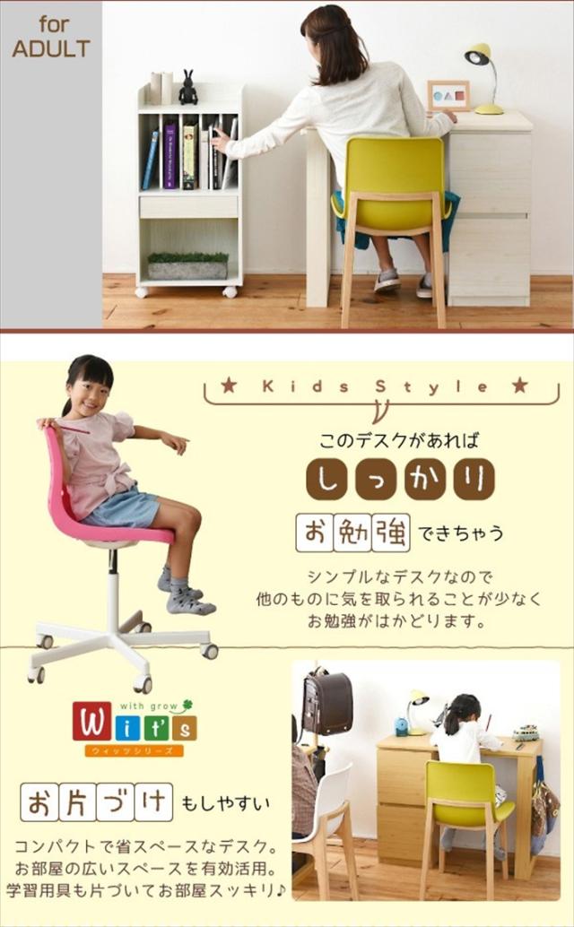 チェスト セット 幅90 薄型 連結可能な デスク 引き出し付き シンプル ワークデスク コンパクトデスク wit'sシリーズ 育てるデスク