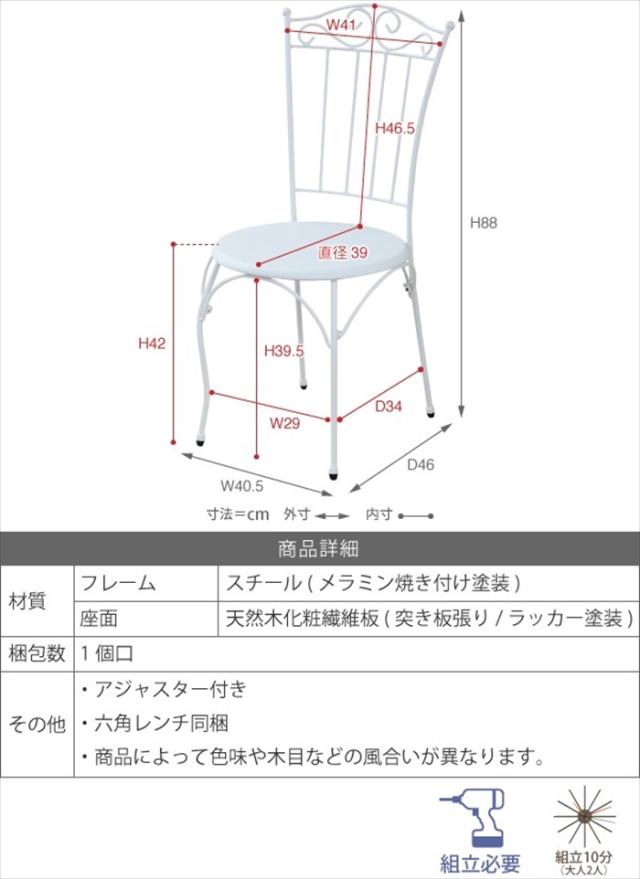 | □外寸 幅40.5×奥行46×高さ88cm □内寸 [座面]幅39×奥行39×高さ42cm |