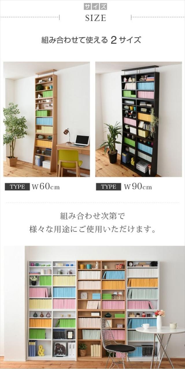 | 棚板を1cm間隔で調整できるので、本だけでなく、ディスプレイラックとして使える万能本棚。 お部屋に合わせて選べる60幅、90幅をご用意。 組み合わせて使えば、120幅、150幅としても使える大容量の文庫本ラック。 本体と上置きのセットで、本棚の上のデットスペースも有効活用! |