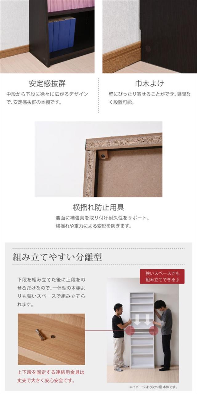 文庫本ラック 幅60 上置きセット 書棚 壁面収納 つっぱり 木製 本収納 漫画 CD DVD 1cmピッチ 薄型 大容量