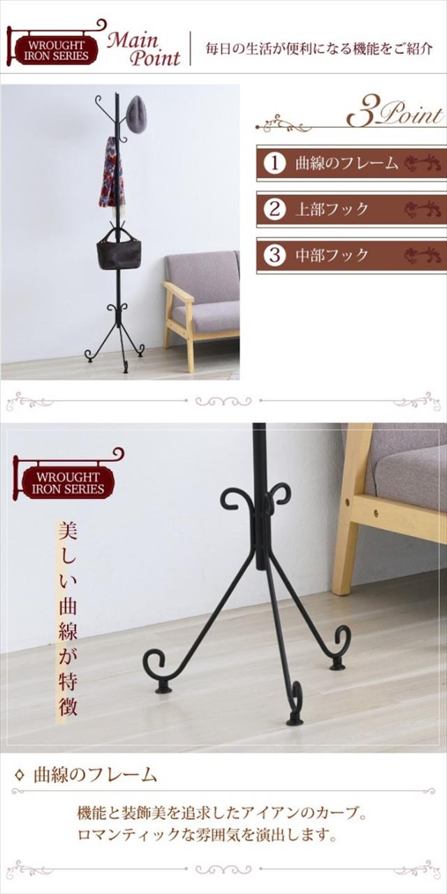 ポールハンガー アイアン 脚 アンティーク風 クラシック レトロ アイアン家具 ハンガー 一人暮らし ロートアイアン シリーズ