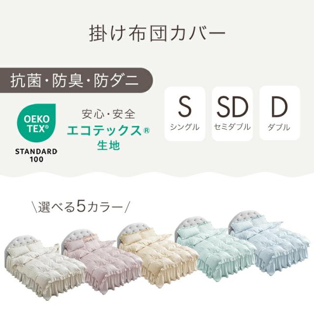 フリル 掛け布団カバー 単品 抗菌 防臭 防ダニ シングル ふとんカバー 掛布団カバー かけふとんカバー 掛カバー 掛けカバー 布団カバー 寝具カバー 掛け布団 カバー シーツ フリル付き 洗える おしゃれ 可愛い かわいい 姫系
