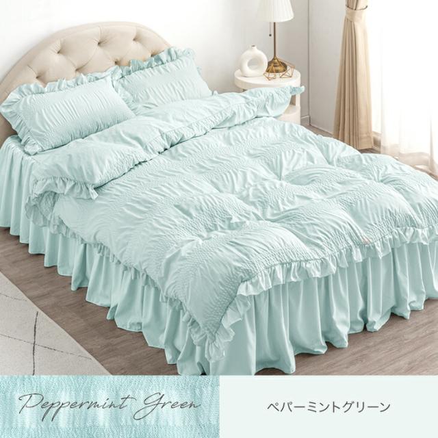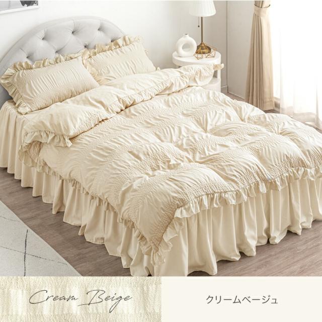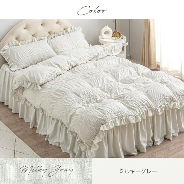 布団カバー ふとんカバー 寝具カバー 布団カバー フリル付き 丸洗いOK アイボリー グレー イエロー ベージュ ピンク グリーン ブルー おしゃれ 可愛い 姫系 無地 かわいい 韓国 風
