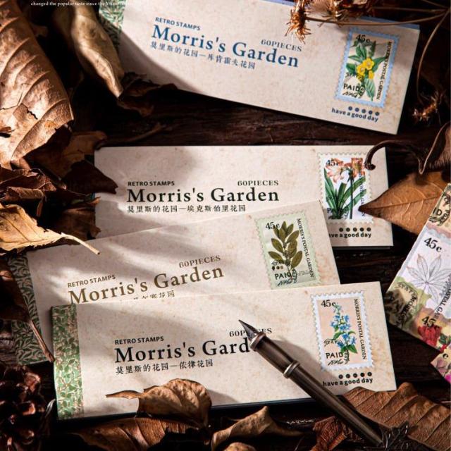 切手シール マステシールブック 60枚 マスキングテープ素材 スタンプ シール 切手ステッカー マステ 手帳デコ 手帳 デコレーション アレンジ アイテム コラージュ素材 ジャンクジャーナル ヴィンテージ ビンテージ 手芸 ハンドメイド 資材 ラベル 植物 diy DIY