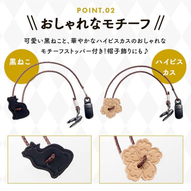 帽子クリップ 帽子とばーず 黒ねこ ハイビスカス 花型 おしゃれ かわいい キャップキーパー 帽子キーパー ハットクリップ ハットキーパー あごひも 紐 コード アウトドア 登山 グッズ【メール便送料無料】