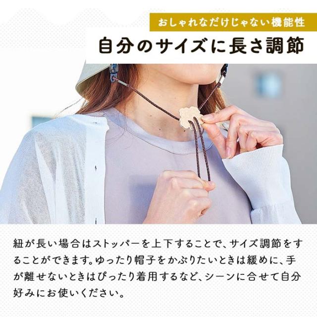 | クリップで挟むだけの簡単取付!外れにくいクリップで、風で帽子が飛ぶのを防いでくれる帽子ストッパーです。かわいいチャームのストッパーでサイズ調節が可能。帽子のツバやビンカワにあご紐のように取り付けたり、帽子のツバと洋服に取り付けたりと、使い方もいろいろ! | |