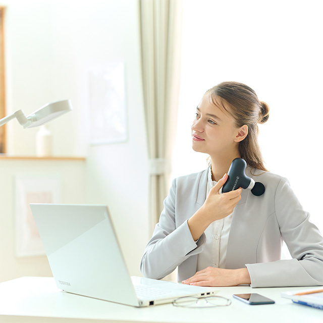 また、付属の〔アタッチメント4種〕と〔4段階の振動〕を組み合わせれば、首、肩・腰・脚・足裏などの様々な部位のボディケアから、フェイスケアといった用途に合わせての使用が可能です。