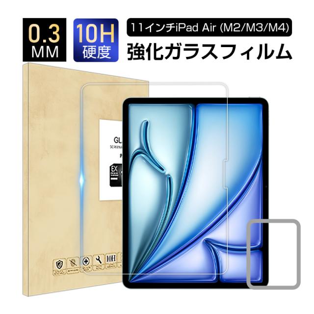 11インチiPad Air(M2) 強化ガラスフィルム 11インチiPad Air(M3) ガラスシール 11ンチiPad Air(M4) Apple タブレット用 スクリーン保護シート 傷防止 クリア仕様 0.3mm 超薄型 表面硬度10H 耐衝撃 疎油 撥水 スクラッチ防止 ★らくらく補助ツール付きで簡単貼り付け!