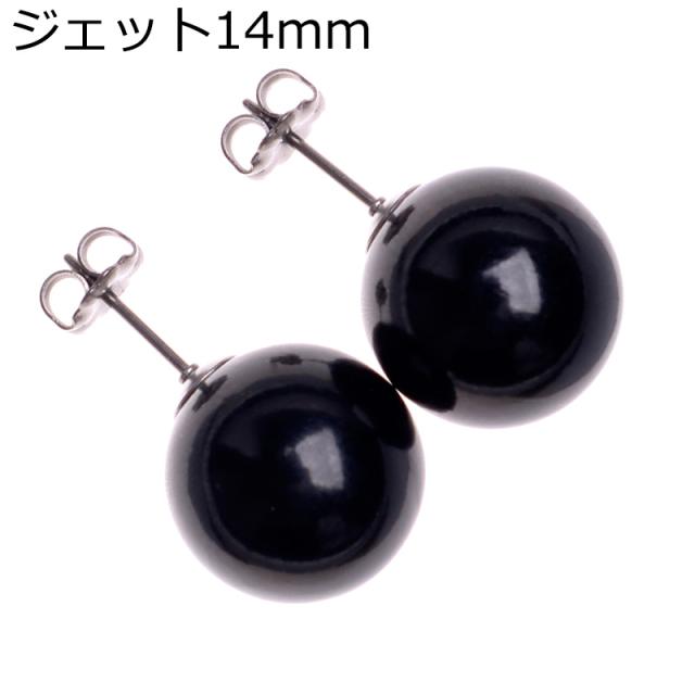 【仕様】天然ジェット14mm珠 チタンポストピアス・チタン製キャッチ