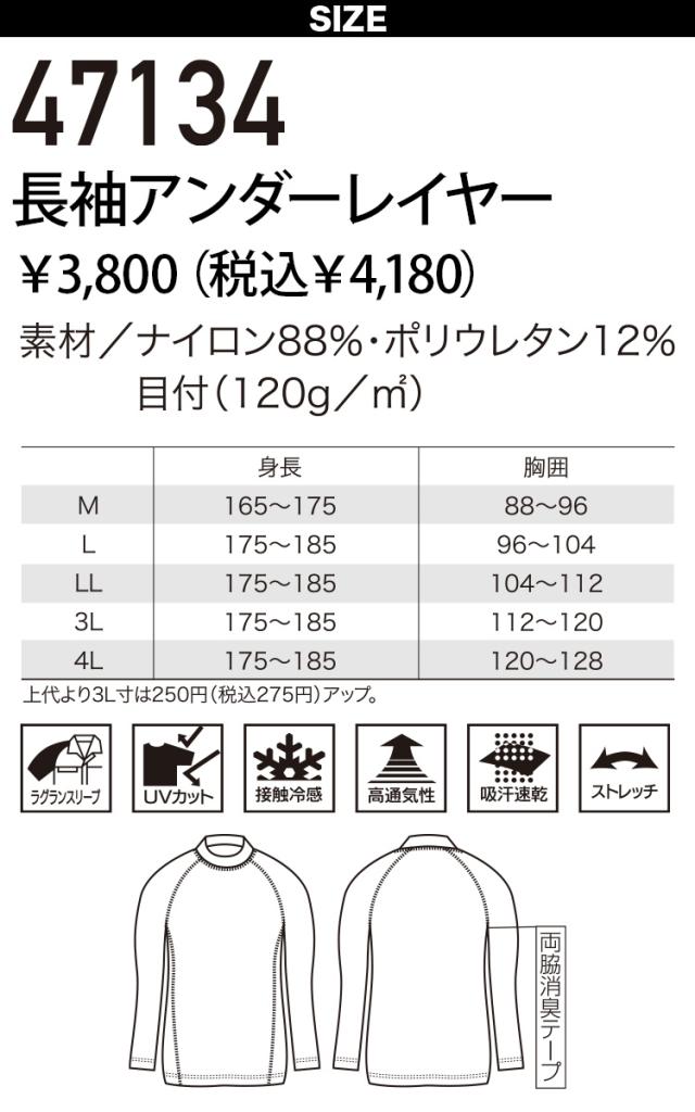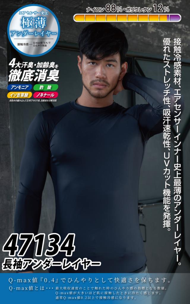 クロダルマ コンプレッション 47134 長袖アンダーレイヤー ストレッチ ファン付き作業服インナー 吸汗速乾 徹底消臭 作業着 作業服 接触冷感 UVカット 春夏 サマーインナー 高通気性 KURODARUMA