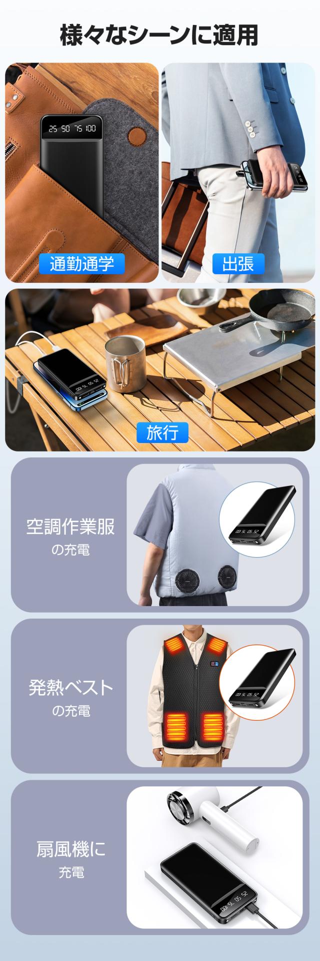 40000mAh超大容量を備え、スマホ、タブレットだけでなく、その他ほとんどのUSB機器にも複数回充電できるモバイルバッテリーです。旅行、出張など電源の取りにくい環境でもバッテリー切れの心配がありません。日頃の使用はもちろん、キャンプ、登山、ハイキングなどアウトドアも、停電、地震、台風など災害時にも非常用電源として重宝されます。厚さ約2.5cmの極薄モデルで、カバンの中に入れても邪魔になりにくいサイズです。
