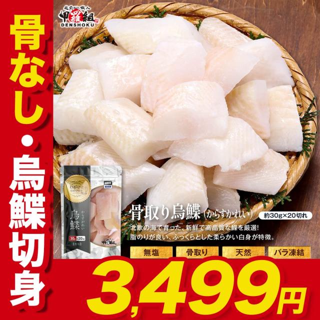 無塩&骨取りカラスガレイの切身(約30g×20切れ)
