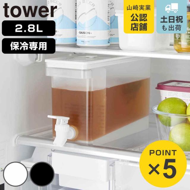 山崎実業 tower 冷蔵庫ドリンクサーバー タワー 2.8L ( 4903208015820 タワーシリーズ ドリンクサーバー 蛇口付き 冷蔵庫 食洗機対応 ウォータージャグ サーバー 2.8リットル 2.8 保冷専用 )