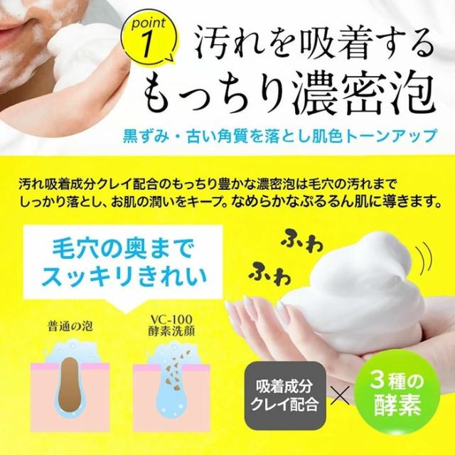 【 VC-100 酵素洗顔 フォーム 】 ビタミンC クリアブライト 酵素 洗顔 ビタミンC 毛穴 角質 濃密泡 吸着 うるおい 保湿 透明感 【送料無料】