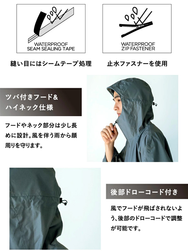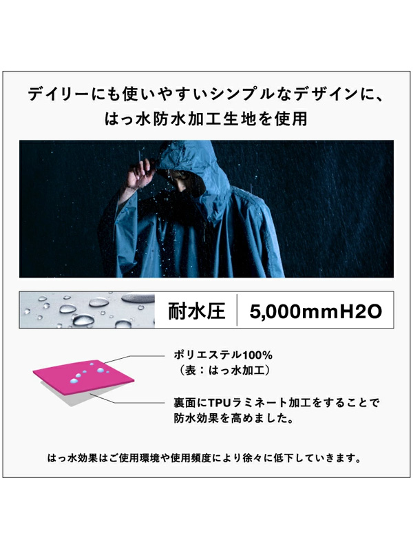 耐水圧 5,000mmH2O 表面:はっ水加工 裏面:ポリウレタンコーティング加工 収納袋付き 日本正規販売店 | ||||||||||