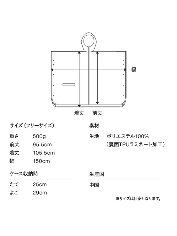 Wpc IZA RAIN BREAKER PONCHO ダブリュピーシーイーザ レイン ブレーカー ポンチョ 【Wpc(ダブルピーシー)】 「新たな可能性を生み出す」をスローガンに2004年に誕生したドメスティックブランド。 様々な世代・ジャンルに合った方へ、雨の日だけでなく、天気によって変わる”ライフスタイリング”を提案していきます。 そして。ご愛用いただけるお客様の毎日が楽しくなる製品をお届けします。 【Wpc. IZA】 昨今では、夏の記録的酷暑にみまわれ、熱中症による緊急搬送が年々増えています。 環境省では熱ストレスを一人ひとりの工夫で軽減できる暑さ対策として、 暑さ指数(WBGT)の低減効果が高い「日傘」の活用が推進されています。 しかしながら、日傘は女性が持つものという認識がまだ高く、その認識を変えていく施策として、 雨傘・日傘どちらの機能もハイスペックな晴雨兼用折り畳み傘というジャンルで「持ち歩く習慣」を提案し、 男性が自然に日傘を使用するシーンを作り出します。 「日傘男子」という言葉が一人歩きしていますが、現状は、女性が持つイメージを払拭できていないと考えます。 晴雨兼用傘という導入口から男性が自然に日傘を使用できる機会と意識を創出します。 男女兼用で使えるユニセックスデザインで、小柄な女性から長身の男性まで幅広く着用いただけます。 ゆったり大きめなシルエットなので中に着るアイテムを選ばず、動きやすいのも嬉しいポイント。 ハイネック仕様のためファスナーを上部まであげれば、首元もしっかり守れます。 ■はっ水・防水加工 雨粒や水滴を防ぐはっ水・防水加工で雨の日をサポート。 表面には撥水加工、裏面にはポリウレタンコーティング加工をすることで防水効果を高めました。 ※はっ水効果はご使用環境は使用頻度により徐々に低下していきます。 耐水圧:5,000mmH2O〈生地:ポリエステル100% 裏面TPUラミネート〉 ■日常使いに便利な機能が満載 ・ツバ付きフードで前からの雨を防ぎ、雨の日の視界を保ち安全性を強化します。 ・止水ファスナーを採用 特殊なフィルムでカバーしたはっ水加工を施した止水ファスナーを採用し、ファスナーからの浸水を防止します。 ・繋ぎ目からの浸水防止 生地と生地の縫い合わせの繋ぎ目からの浸水を防ぐために、シームテープ処理を施しています。 ・片側にポケットあり | ||||||||||