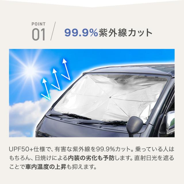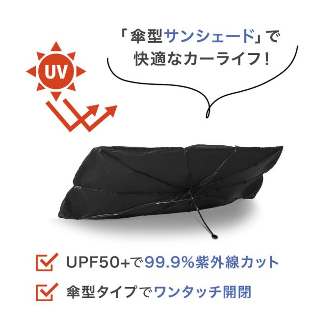 【商品レビューでポイント+5%】 車用サンシェード 傘式 10本骨 コンパクト収納 簡単設置 UPF50+ 完全遮光 遮熱 日よけ 紫外線対策 車内高温防止 RIORES