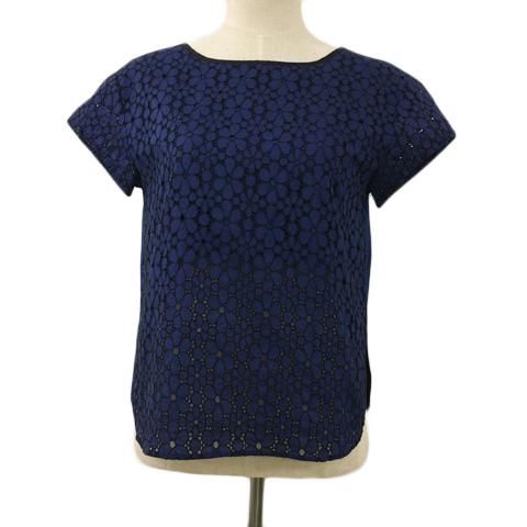 【中古】ジュメル バイ ロデオ カットソー ブラウス プルオーバー ボートネック 刺繍 レース 半袖 紺 ネイビー