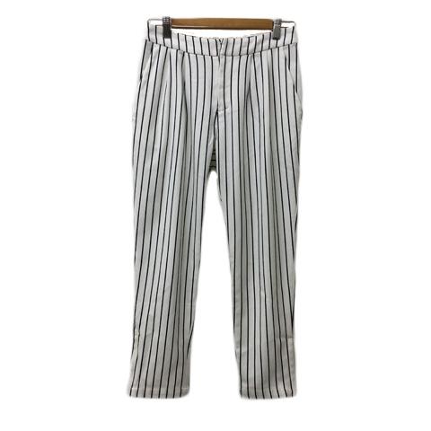 【中古】ミューニック Munich パンツ テーパード ロング タック ストライプ S 白 黒 ホワイト ブラック レディース