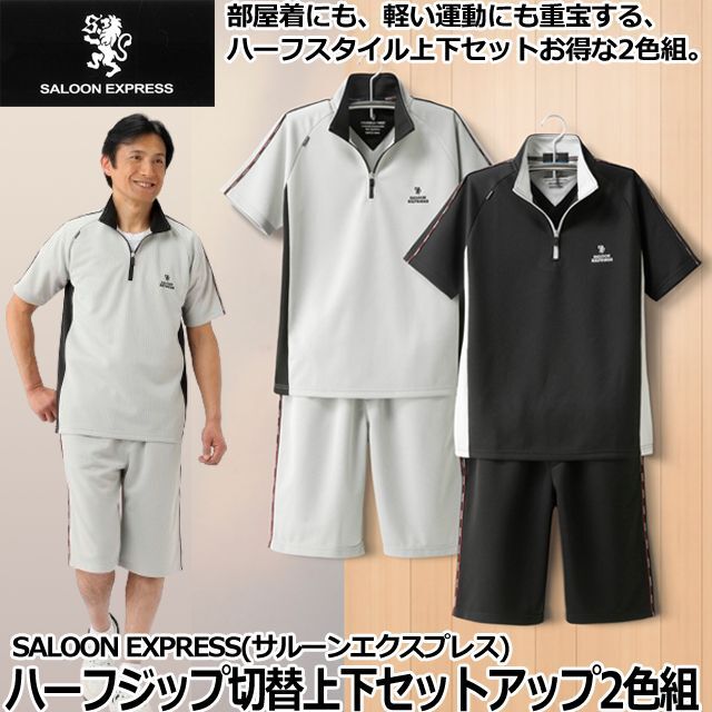 メンズ ハーフジップ切替 上下セットアップ 2色組 半袖 ハーフパンツ 男性用 紳士用 SALOON EXPRESS サルーンエクスプレス 部屋着 敬老の日