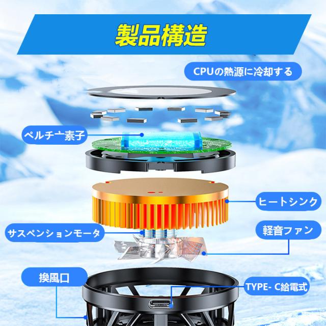 スマホクーラー 磁気式 冷却ファン スマホ 冷却 3秒急速冷却 半導体 マグネットパッド付き USB給電 スマホ散熱器 静音 軽