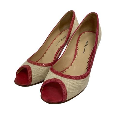 【中古】ヴァレクストラ Valextra サンダル アーモンドトゥ ハイヒール ライン 35 1/2 ベージュ ピンク レディース