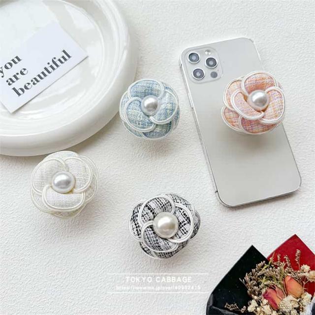 スマホグリップ スマフォスタンド スマホグリップ 携帯スタンド スマホ グリップスタンド スマホアクセサリー iphoneグリップ 携帯グリップ 携帯スタンド iphoneスタンド マフォスタンド マフォグリップ 携帯アクセサリー カメリア 花 バラ パール kks-240418-20